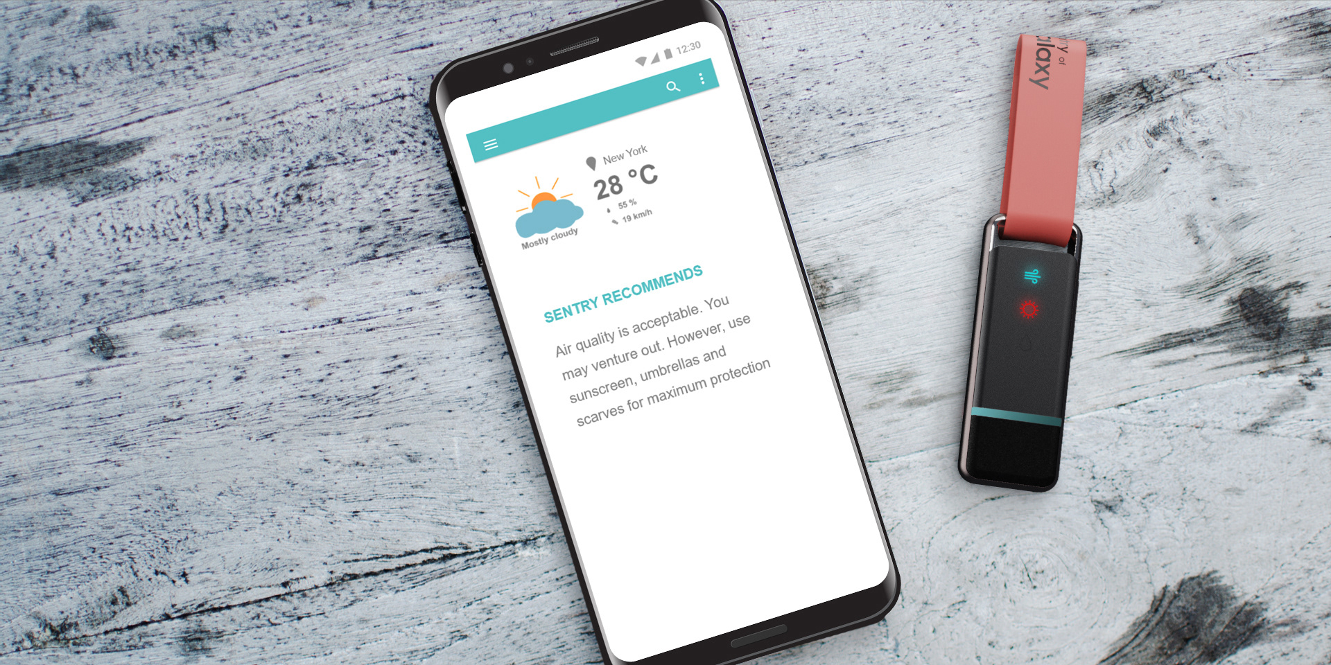 Samsung Sentry is a small robust device that monitors environmental conditions. It alerts users when they are at risk of bad air quality, unsafe water and ultraviolet light exposure.